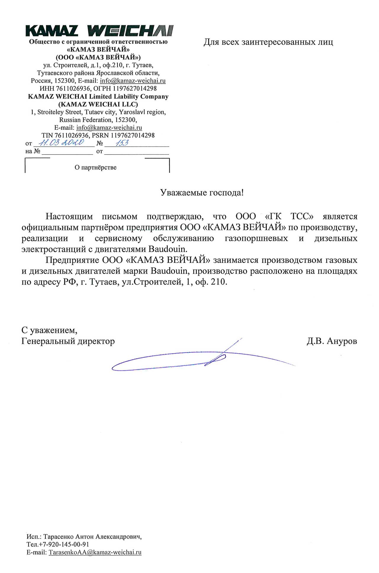 Группа компаний ТСС является давним партнёром корпорации Weichai в области производства дизельных генераторных установок, а с января 2017 года инжинирингово-промышленной группе компаний ТСС присвоен официальный статус партнёра Baudouin Marine OEM, который подразумевает производство дизельных генераторных установок на основе надёжных двигателей легендарной французской марки.