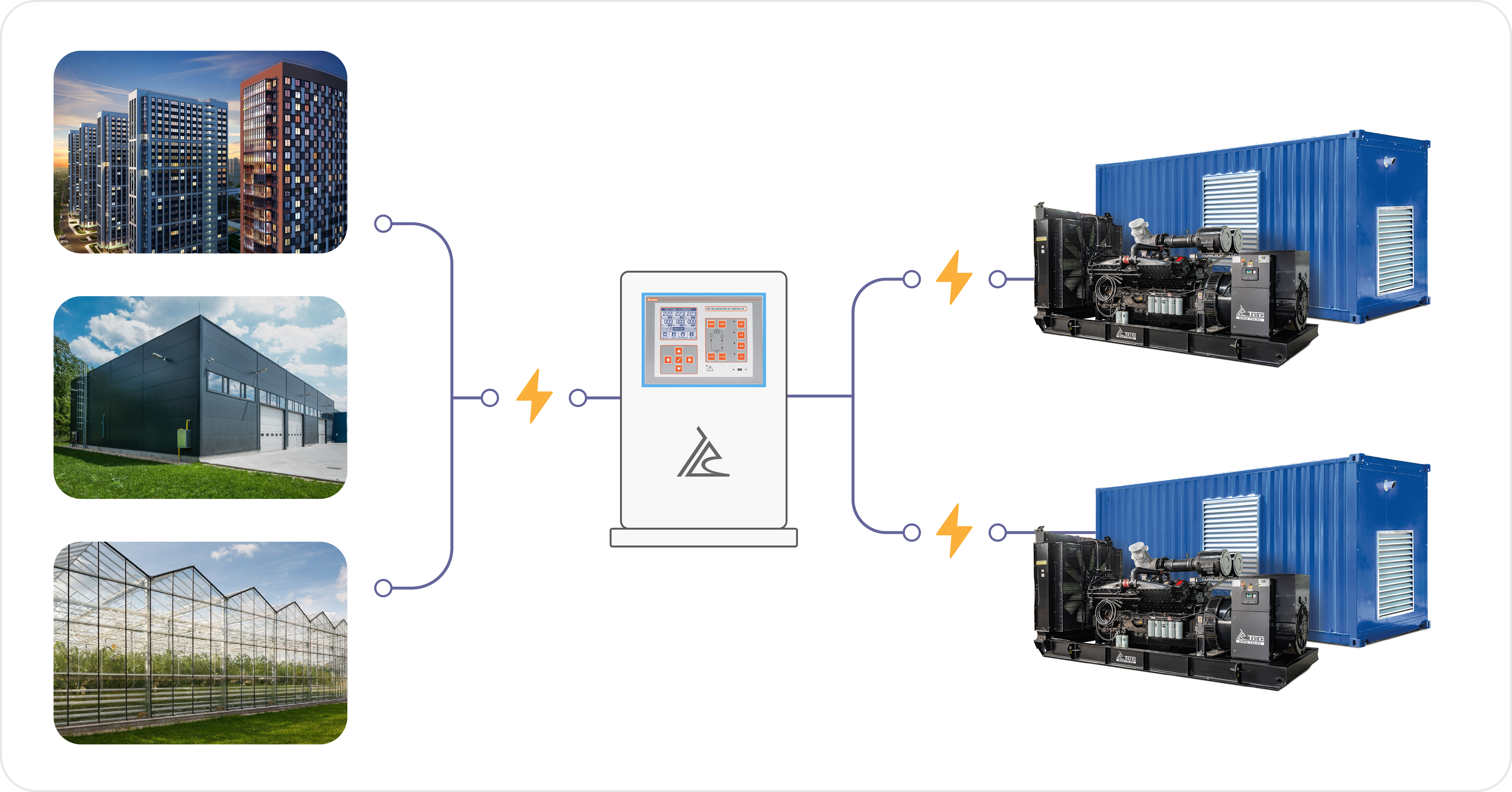 - в энергокомплекс может быть объединено до 16 генераторных установок;